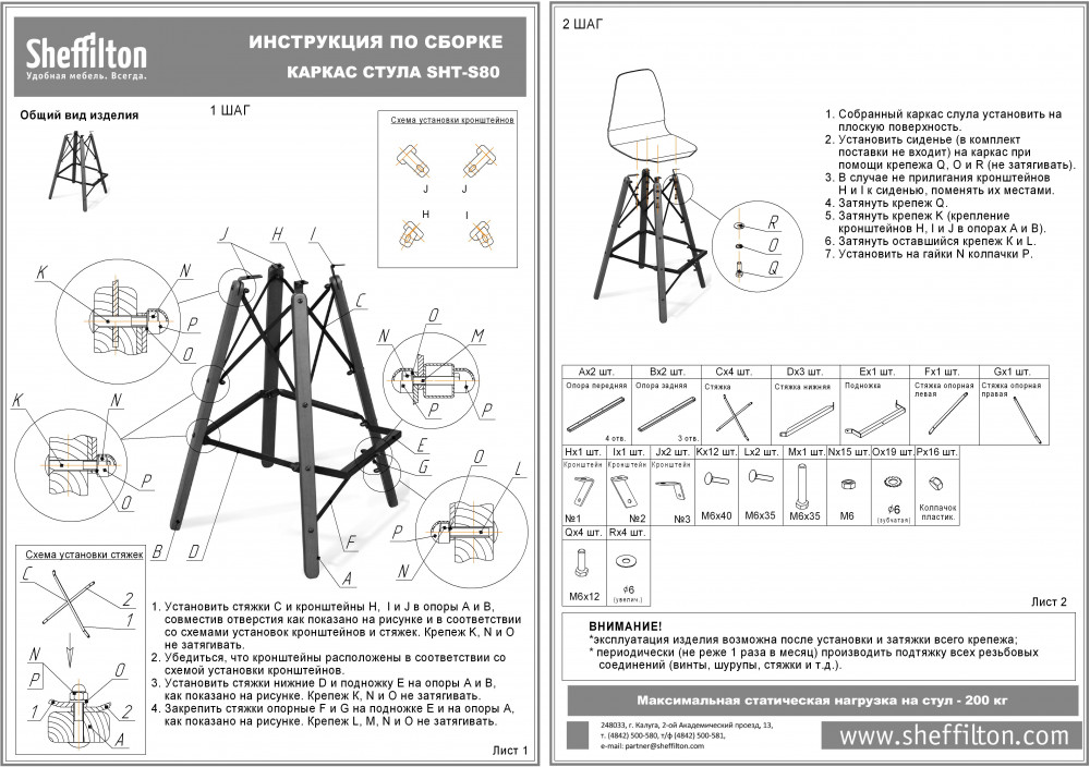 Специальные подпятники каркаса: обеспечивают защиту покрытия от царапин и повышают устойчивость стула. К каркасу приложен комплект крепежа и схема сборки.