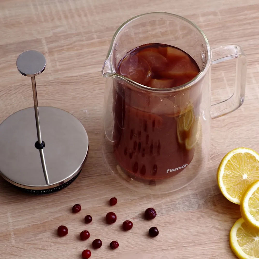 Fissman Френч-пресс «Doppio»-35% +449 стильный дизайн прочное стекло удобный объём 1 л запотевание