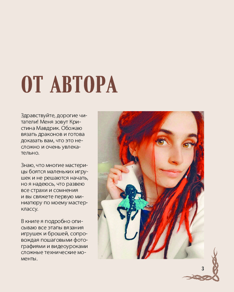 Эта книга популярного блогера, создателя уникальной коллекции фантастических и мистических существ, связанных в технике амигуруми, Кристины Мавдрик осуществит вашу мечту. Несложная техника вязания крючком, подробные объяснения, пошаговые иллюстрации и даже видеоуроки по ссылкам прямо со страниц книги, и вот на вашей руке уже удобно устроился огненный или водный дракон, загадочный хамелеон или невероятный аксолотль, таинственная Несси или юркая ящерка. И перед вами открылась таинственная дверь в мистическую вселенную драконов и эльфов, наполненную свободой, силой и магией! |