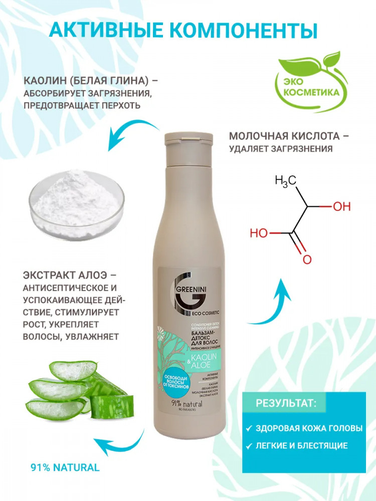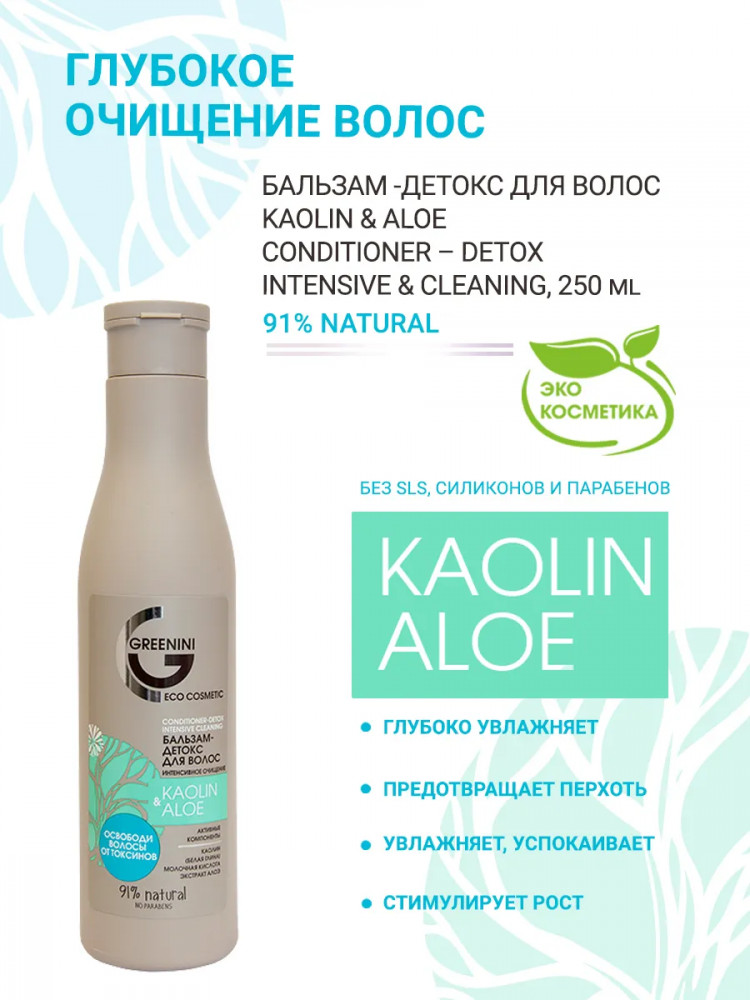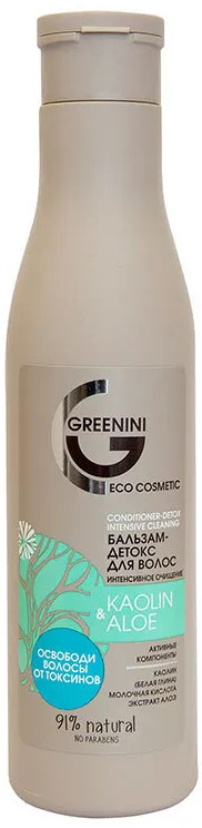 Greenini Бальзам-детокс для волос интенсивное очищение «Kaolin & аloe»