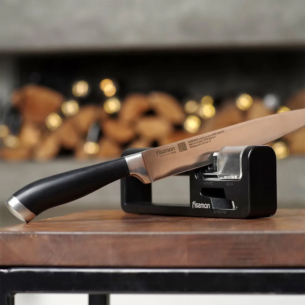 Чтобы процесс приготовления пищи доставлял удовольствие, рабочие инструменты всегда должны быть в порядке. Для обработки мяса, рыбы, овощей необходимы качественные и, что особенно важно, острые ножи. Легко и профессионально вернуть лезвию ножа первоначальную остроту вам поможет точило Fissman. Удобная и безопасная конструкция точила не потребует много сил и времени для поддержания ножей в идеальном состоянии.