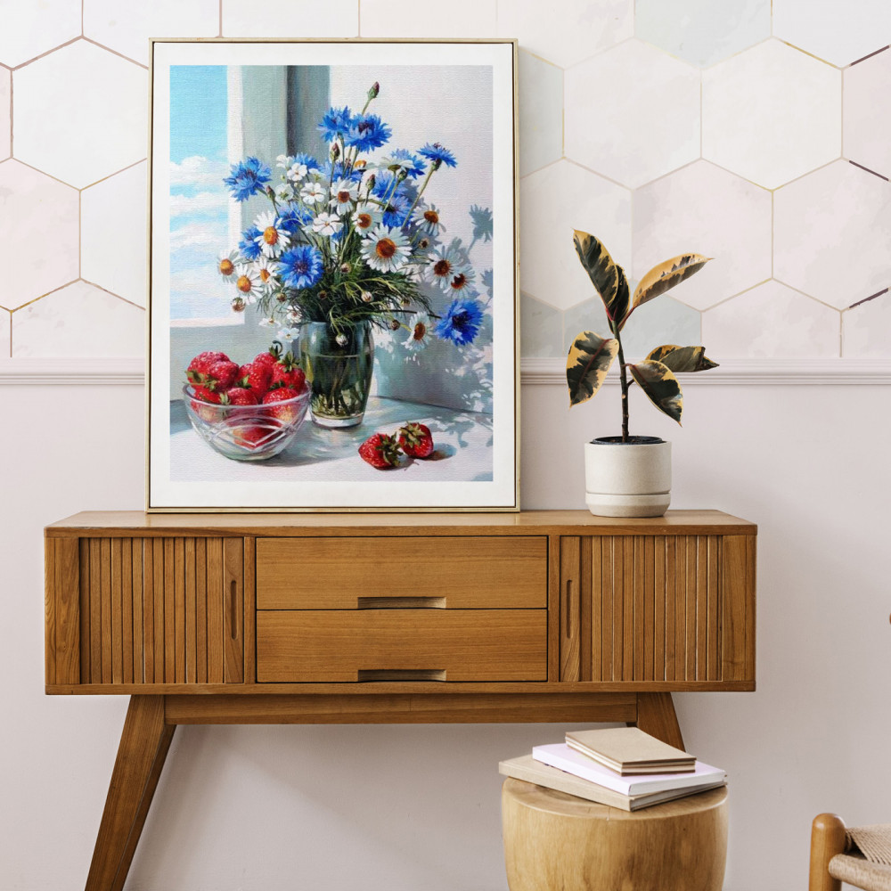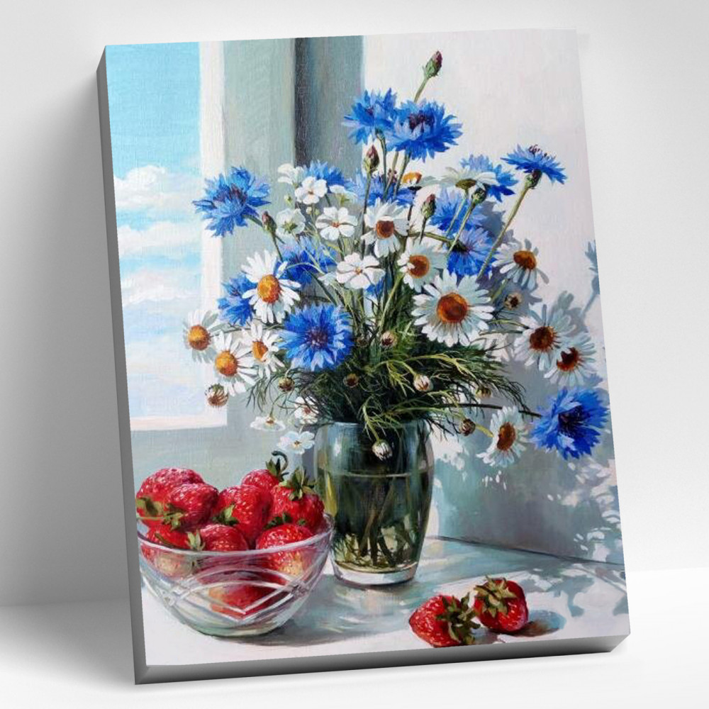 💳 Оплатить за товар можно при получении 🇰🇿 Есть бесплатная доставка по Казахстану от 1 дня 🎁 Копите бонусы с каждой покупки Нежный полевой букет из ромашек и васильков в вазе на окне можно нарисовать в технике «рисование по номерам». На холст нанесен контур рисунка с разбивкой на сегменты с маркерами. Кисти двух размеров позволяют аккуратно и тщательно проработать все участки изображения. |