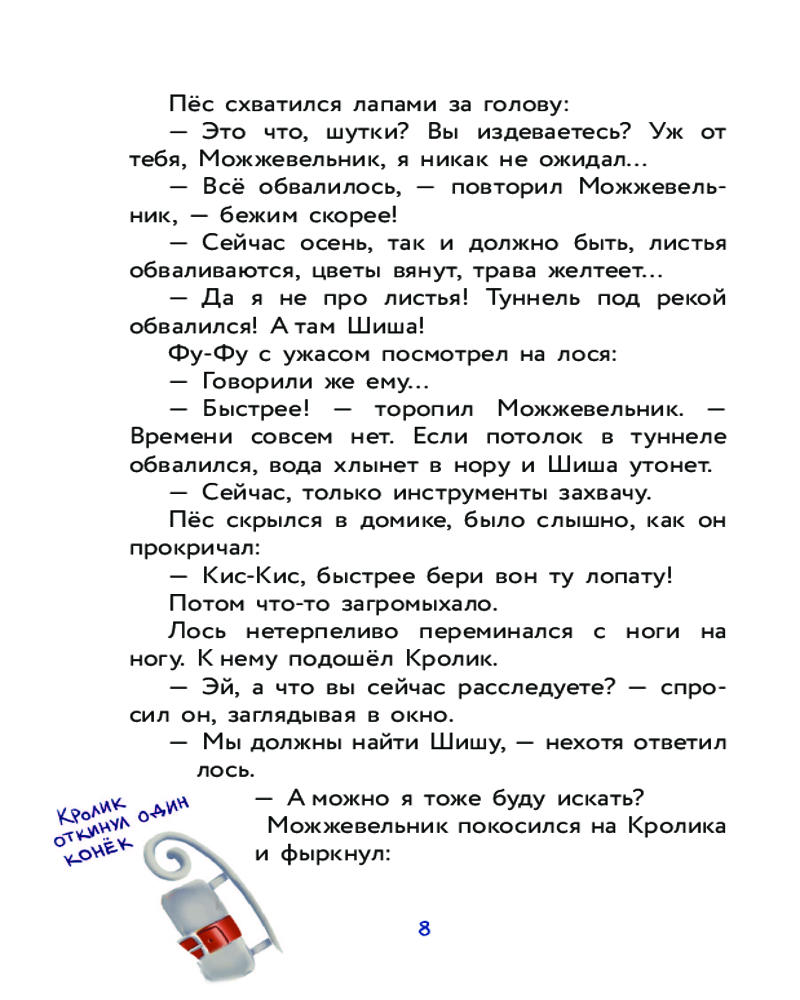 💳 Оплатить за товар можно при получении 🇰🇿 Есть бесплатная доставка по Казахстану от 1 дня 🎁 Копите бонусы с каждой покупки Серия: Самый прикольный детектив В Скверном лесу царит ужасный переполох: кто-то напал на крота Шишу и похитил бесценный клад. У Бюро расследований объявился подозрительный спортсмен Тушкан. Бобёр Бобрович не может найти любимую тачку. А неугомонный Кролик что-то всё время вынюхивает. Что скрывается за этими событиями и где же таинственный клад? Самые лучшие в мире сыщики кот Кис-Кис и пёс Фу-Фу приступают к расследованию. |