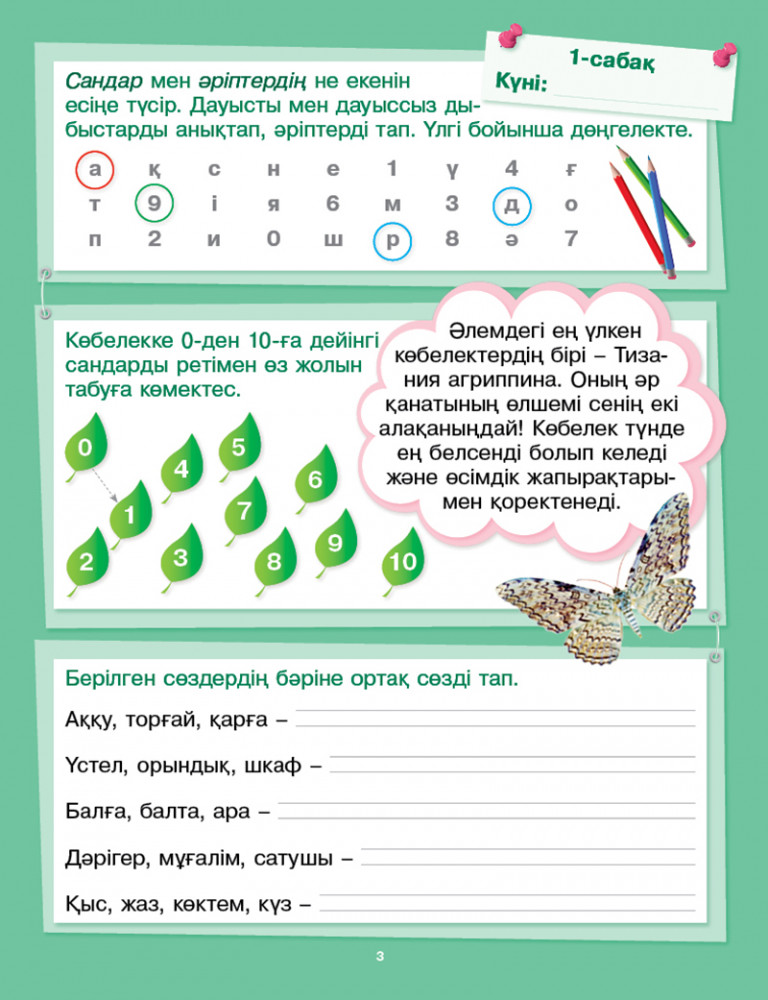 💳 Оплатить за товар можно при получении 🇰🇿 Есть бесплатная доставка по Казахстану от 1 дня 🎁 Копите бонусы с каждой покупки Балаңыздың жазғы демалысында дем алып, күш жинап қана қоймай, өткен оқу жылындағы алған білімдерін есінде сақтауы үшін не істеу керек? Ұсынылып отырған құрал оқушыға 1-сыныпта өтілген тақырыптарды қайталап, 2-сыныпта жақсы оқуға көмектеседі. Құралда математикадан, қазақ тілінен, жаратылыстанудан және дүниетанудан қызықты тапсырмалары бар 30 біріктірілген сабақтар берілген. Барлық тапсырмалар осы оқу пәндері бойынша бағдарламаларға сәйкес келеді. Сонымен қатар, құралда оқу техникасын дамытуға көмектесіп ғана қоймай, баланың ой-өрісін кеңейтетін өте көп қызықты мәтіндер топтамасы берілген. |