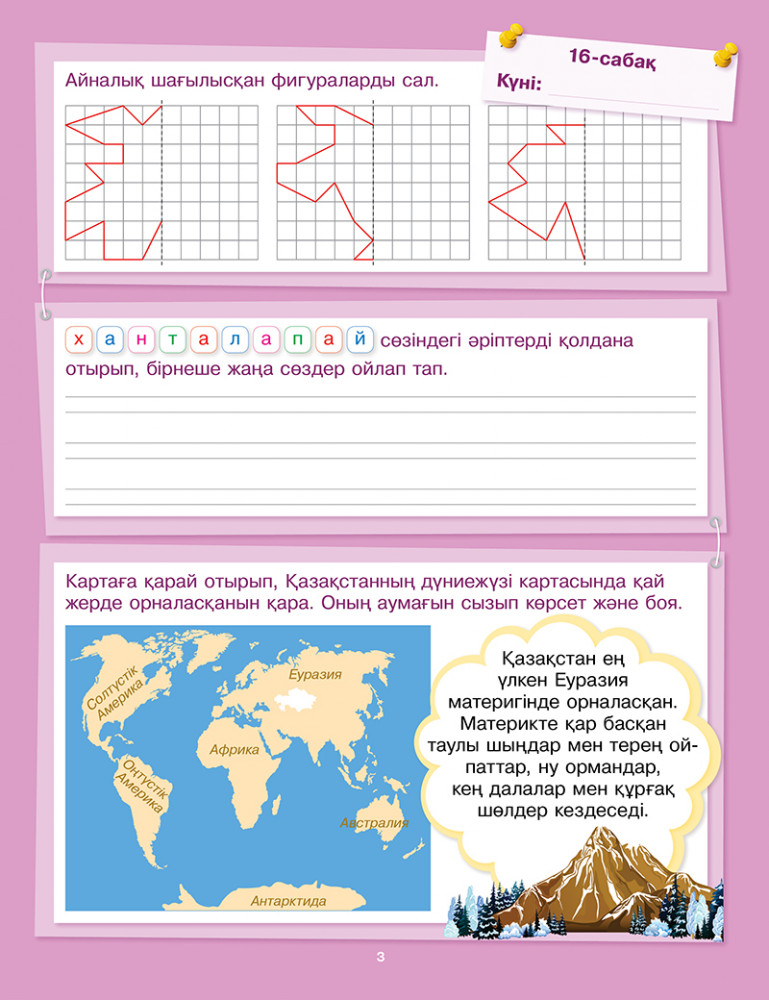 💳 Оплатить за товар можно при получении 🇰🇿 Есть бесплатная доставка по Казахстану от 1 дня 🎁 Копите бонусы с каждой покупки Балаңыздың жазғы демалысында дем алып, күш жинап қана қоймай, өткен оқу жылындағы алған білімдерін есінде сақтауы үшін не істеу керек? Ұсынылып отырған құрал оқушыға 3-сыныпта өтілген тақырыптарды қайталап, 4-сыныпта жақсы оқуға көмектеседі. Құралда математикадан, қазақ тілінен, жаратылыстанудан және дүниетанудан қызықты тапсырмалары бар 30 біріктірілген сабақтар берілген. Барлық тапсырмалар осы оқу пәндері бойынша бағдарламаларға сәйкес келеді. Сонымен қатар, құралда оқу техникасын дамытуға көмектесіп ғана қоймай, баланың ой-өрісін кеңейтетін өте көп қызықты мәтіндер топтамасы берілген. |