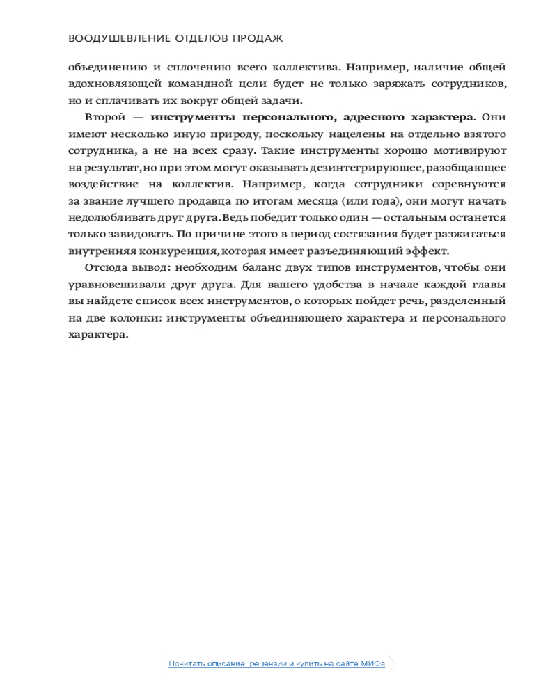 «Время от времени у каждого сотрудника возникает вопрос, который он не сможет или не захочет задать непосредственному руководителю, но который будет его изводить. По этой причине мы предусмотрели возможность записаться на прием к директору по продажам через специальную форму на корпоративном портале. Она получила неофициальное имя «красная кнопка», а на самом деле называлась «Записаться на прием». Каждый сотрудник департамента продаж знал, что у него есть возможность в любой момент достучаться до самого верха.».