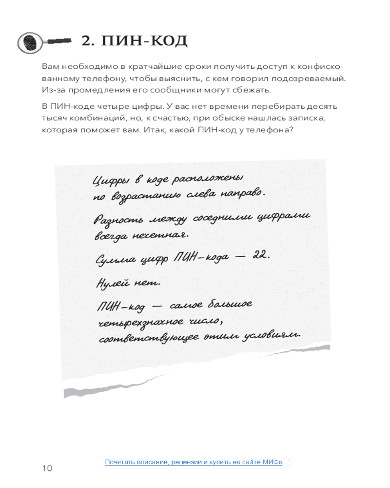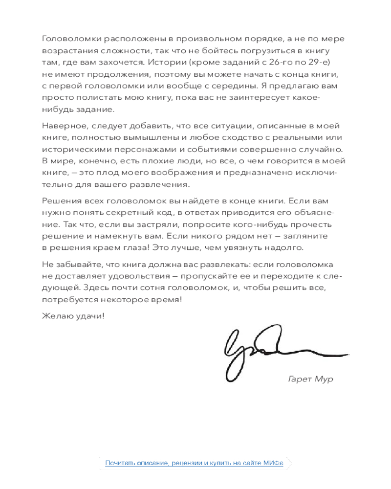 Идеальное преступление. 92 загадочных дела для гениального злодея и супердетективаинтересный материал качественный перевод тесты В данный момент этот товар отсутствует в продаже. Возможно, у нас найдется аналогичный или похожий товар здесь. В этой книге, написанной автором международных бестселлеров доктором Гаретом Муром, найдется все для истинного поклонника детективов. Попробуйте ваши способности в деле: изучайте улики с мест преступления, анализируйте показания свидетелей, взламывайте секретные коды и ищите ответ на главный вопрос: «Кто это совершил?». |