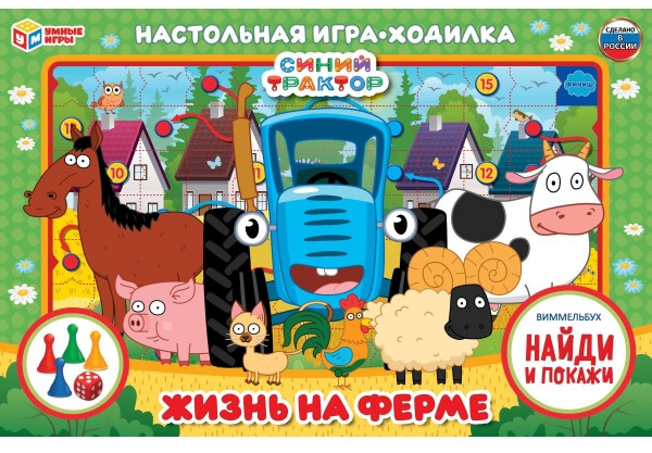 Настольная игра-ходилка «Синий трактор. Жизнь на ферме. Найди и покажи. Виммельбух» ТМ «Умные игры» станет отличным подарком для маленького любознайки.