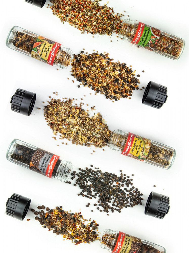 Ароматные специи, мельница хорошо мелко измельчает. Блюда сними становятся неповторимыми....