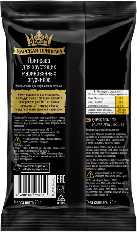 Царская приправа Приправа для хрустящих маринованных огурчиков