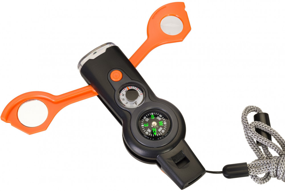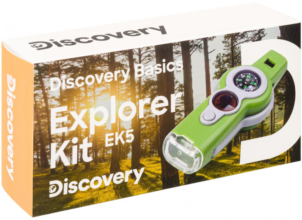 Discovery Basics EK5 — это многофункциональный прибор, который способен заменить собой сразу 6 полезных приспособлений: компас, термометр, свисток, лупу, фонарик и зеркало. Каждое из них полезно при выездах на природу и значительно упрощает решение некоторых задач в походах.