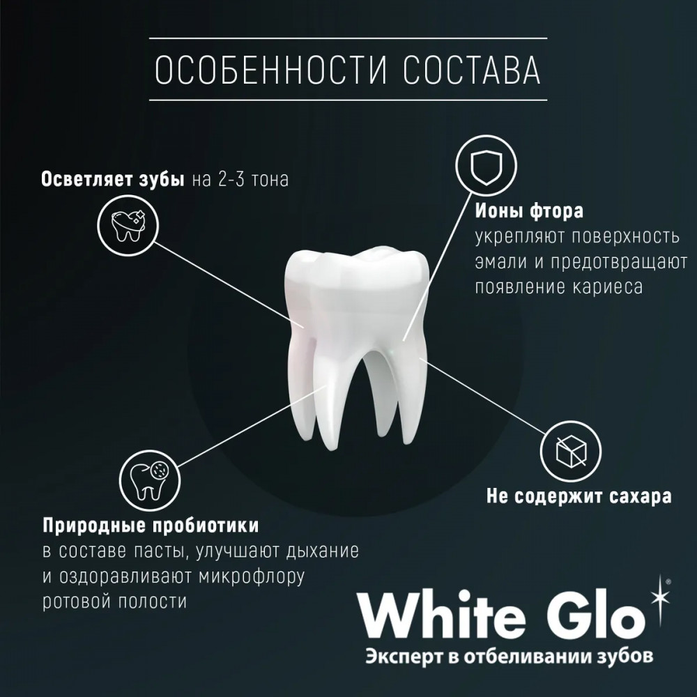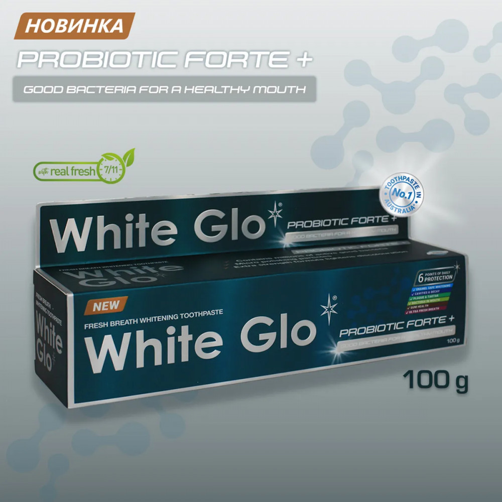 White Glo Зубная паста отбеливающая с пробиотикамиВ данный момент этот товар отсутствует в продаже. Возможно, у нас найдется аналогичный или похожий товар здесь. Отбеливающая зубная паста с пробиотиками содержит миллионы активных полезных бактерий, которые помогают восстановлению баланса для обеспечения свежего дыхания и здоровья полости рта. Микрополирующие частицы зубной пасты в сочетании с мягкой щетиной щётки дают быстрое и эффективное отбеливание зубов. |