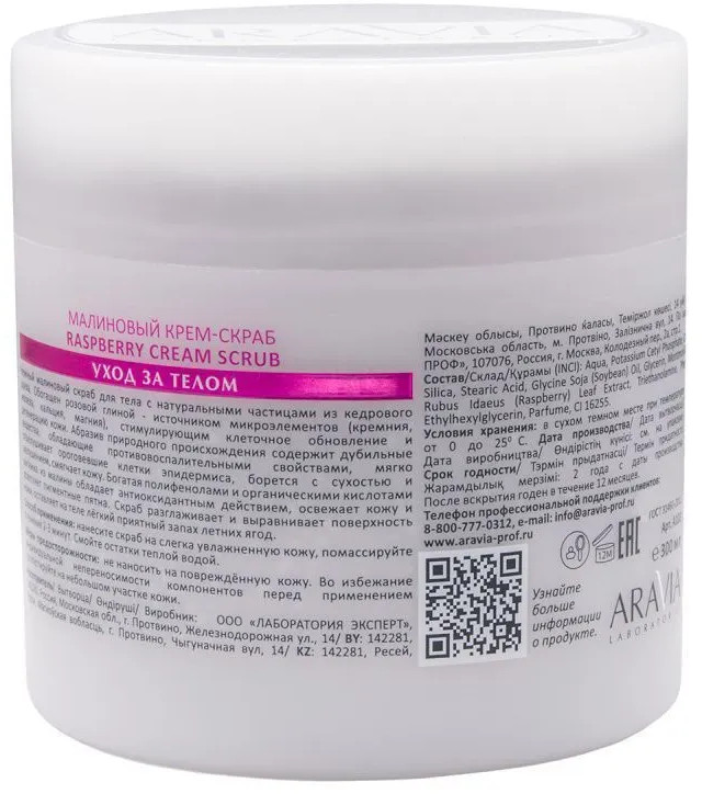 Aravia Крем-скраб малиновый «Raspberry Cream Scrub»-25% +157