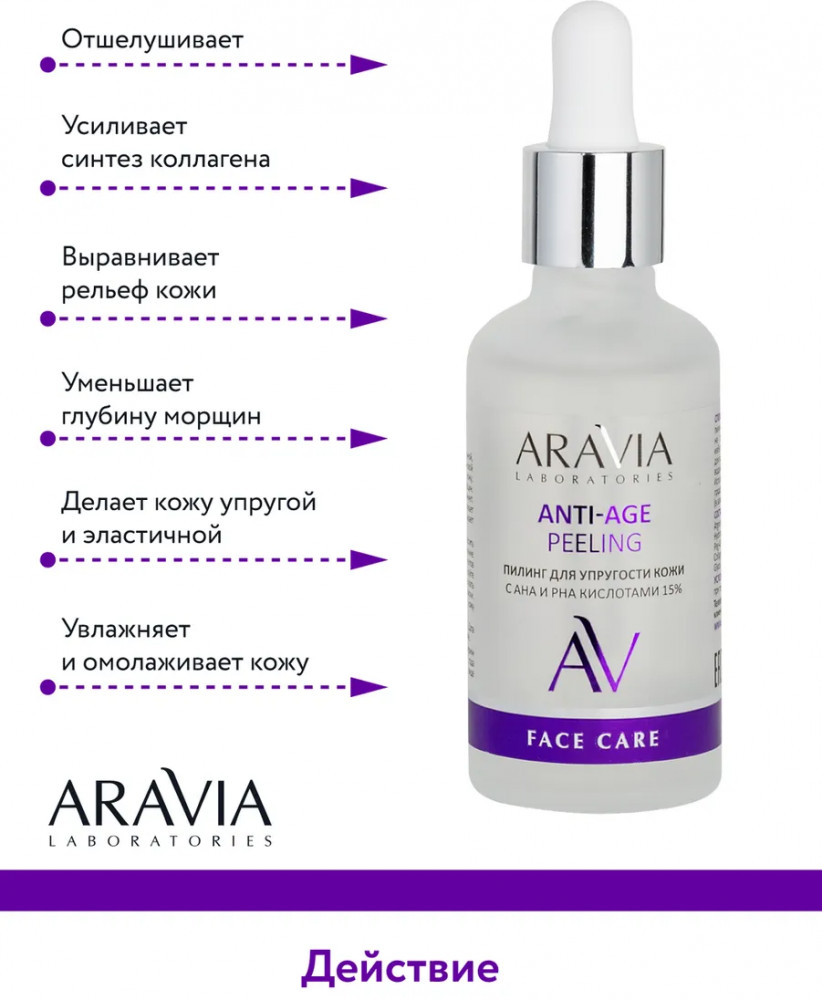 Aravia Пилинг для упругости кожи с AHA и PHA кислотами 15% «Anti-Age Peeling»-25% +105 домашнее применение не раздражает хороший состав отсутствие эффекта