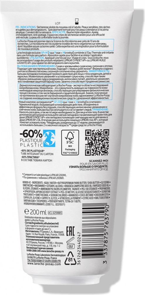 La Roche-Posay Бальзам липидовосстанавливающий тройного действия LIPIKAR AP+М