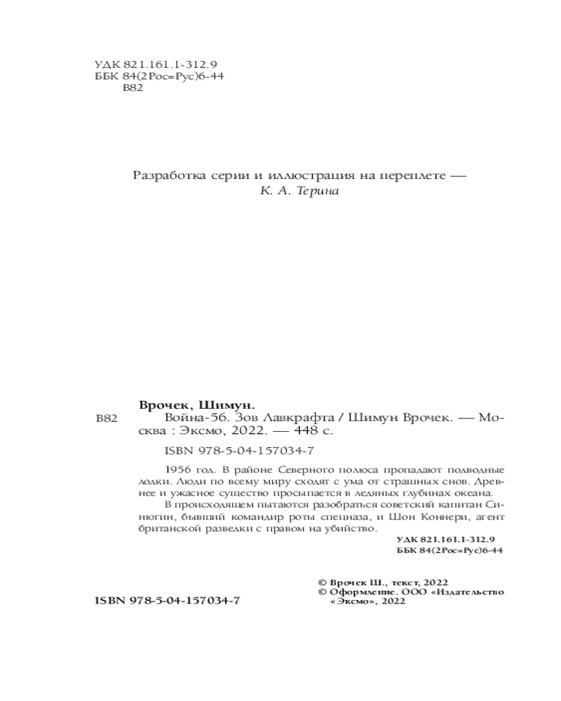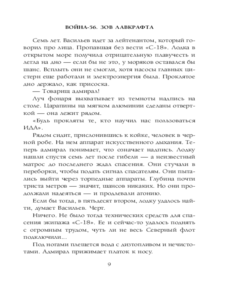 Война-56. Зов ЛавкрафтаВ данный момент этот товар отсутствует в продаже. Возможно, у нас найдется аналогичный или похожий товар здесь. Серия: Сломанный миф. Изнанка 1956 год. В районе Северного полюса пропадают подводные лодки. Люди по всему миру сходят с ума от страшных снов. Древнее и ужасное существо просыпается в ледяных глубинах океана. В происходящем пытаются разобраться советский капитан Синюгин, бывший командир роты спецназа, и Шон Коннери, агент британской разведки с правом на убийство. Новый роман писателя-фантаста Шимуна Врочека, сочетающий в себе элементы альтернативной истории, боевика и хоррора. «Война-56. Зов Лавкрафта» — первая книга цикла. Конец света в натуральную величину, или когда атомная бомба — наш единственный шанс на выживание. Книгу оценят по достоинству любители творчества таких авторов, как Том Клэнси, Г.Ф. Лавкрафт и Юлиан Семенов. Лавкрафт прав — Ктулху существует. |