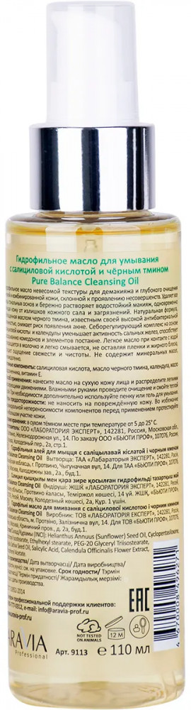 Aravia Масло гидрофильное для умывания c салициловой кислотой и черным тмином «Pure Balance Cleansing Oil»