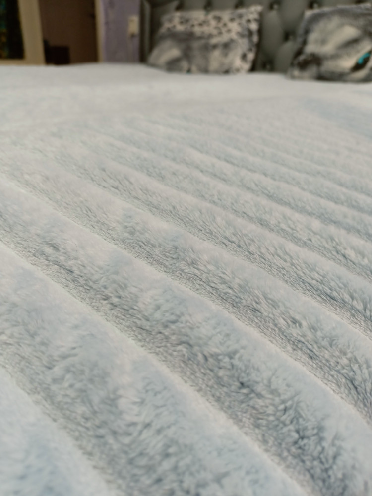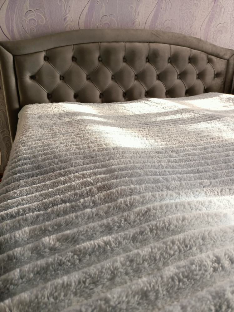 Плед мягкий, не скажу что толстый, но и не тонкий. Плотность средняя, лёгкий достаточно. Размер 200*220 подошёл на кровать 180*200 и высокий матрас надо учитывать. Рада, что успела заказать со скидкой. Цвет интересно играет, днём светло голубой, почти серый, при искусственном освещении голубой, нежный цвет. Товар могу рекомендовать, кто не хочет тяжеленных толстых пледов, кто хочет пушистое лёгкое облачко, но при этом чтобы не как тряпочка. Меня устраивает его мягкость и внешний вид. По эксплуатации посмотрим, думаю стирку в машинке без проблем переживёт.