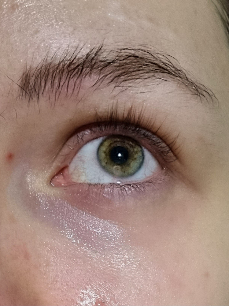 на фото сразу после нанесения видно покраснение. Даже глаз покраснел