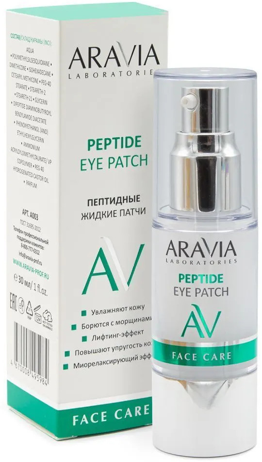 Aravia Патчи жидкие пептидные «Peptide Eye Patch»В данный момент этот товар отсутствует в продаже. Возможно, у нас найдется аналогичный или похожий товар здесь. Жидкие патчи ежедневно бережно ухаживают за кожей вокруг глаз, делая её гладкой и упругой. Восстанавливают эластичность кожи, устраняют вялость и оказывают омолаживающее действие. Пептидный комплекс Syn Ake оказывает видимый лифтинг-эффект, способствует повышению упругости кожи и разглаживанию мелких морщин. |