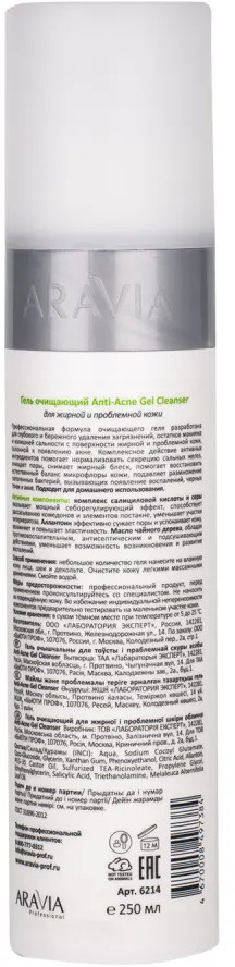 Aravia Гель очищающий для лица «Anti-Acne Gel Cleanser»+126 не сушит хорошо очищает удаляет постакне экономный расход комбинированная кожа