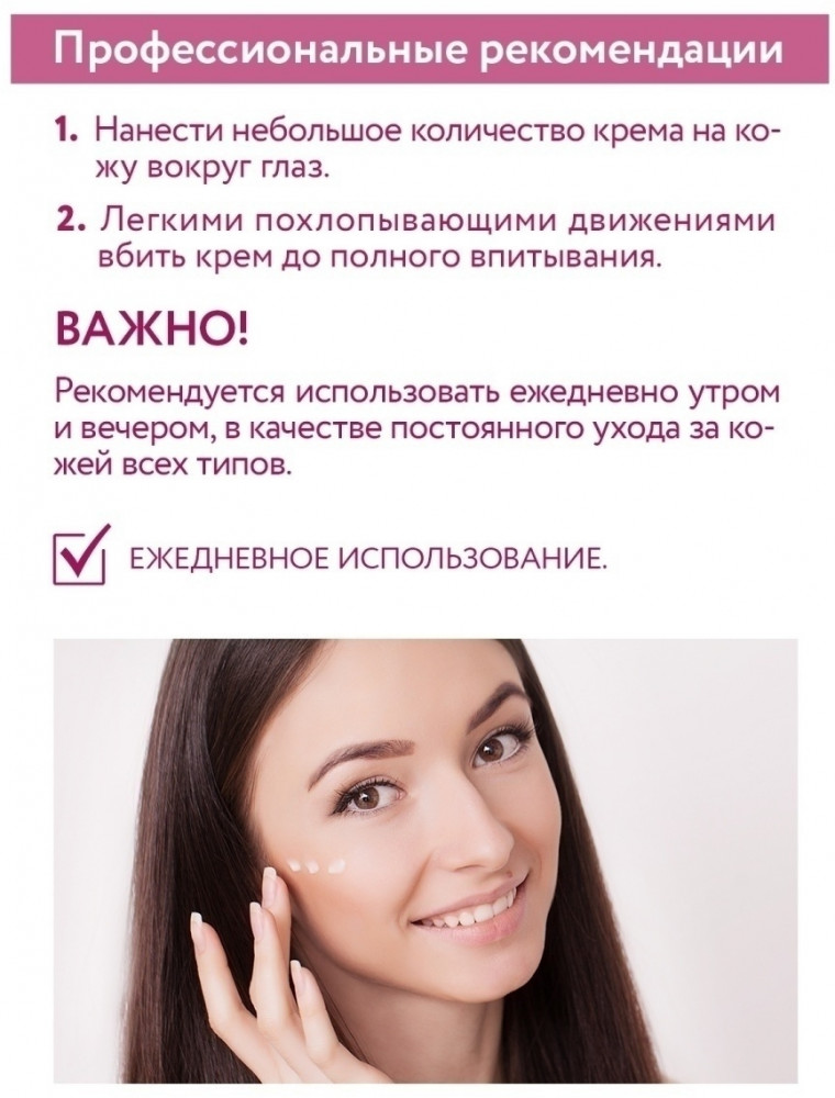 💳 Оплатить за товар можно при получении 🇰🇿 Есть бесплатная доставка по Казахстану от 1 дня 🎁 Копите бонусы с каждой покупки Нежный крем для комплексного ежедневного ухода за кожей век и губ. Крем создает комфортные ощущения, увлажняет, освежает кожу, борется с признаками усталости, разглаживает мелкие морщинки. Рекомендуется для ежедневного применения утром и вечером. |