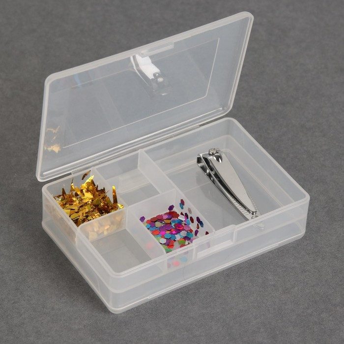 Маленькая коробка, отделения сверху раздельные, снизу есть одно цельное, очень тяжело открывается, в остальном не плохо
