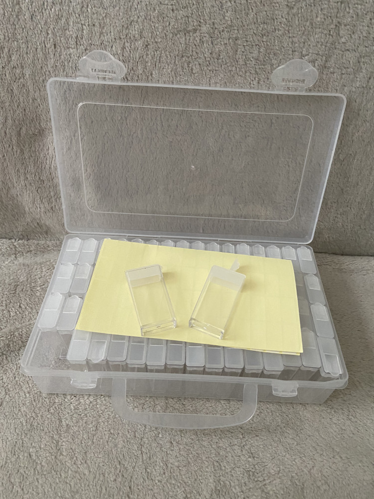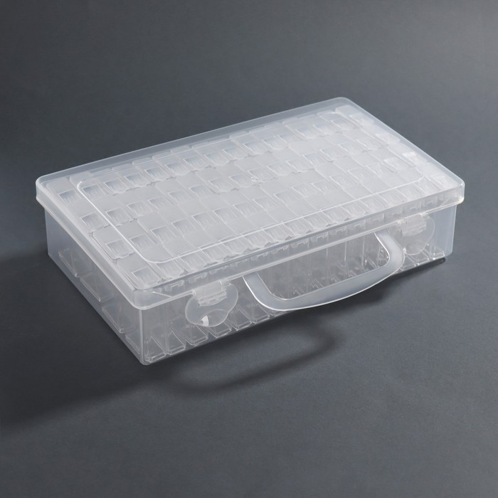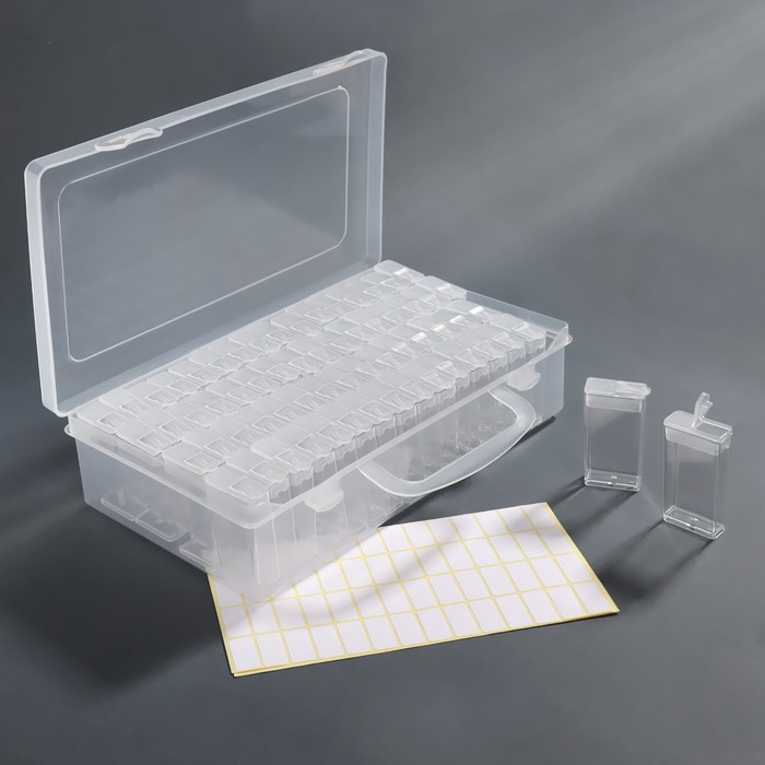 Купила дочке для бисера. Очень компактная, но вместительная коробочка на 64 прямоугольных баночки. Не знаю, как долго будут служить язычки у баночек. Но для бисера, страз, алмазной мозаики — замечательно. Доставка на высоте, ребята молодцы. И всей команде Флип — благодарность за слаженную работу.