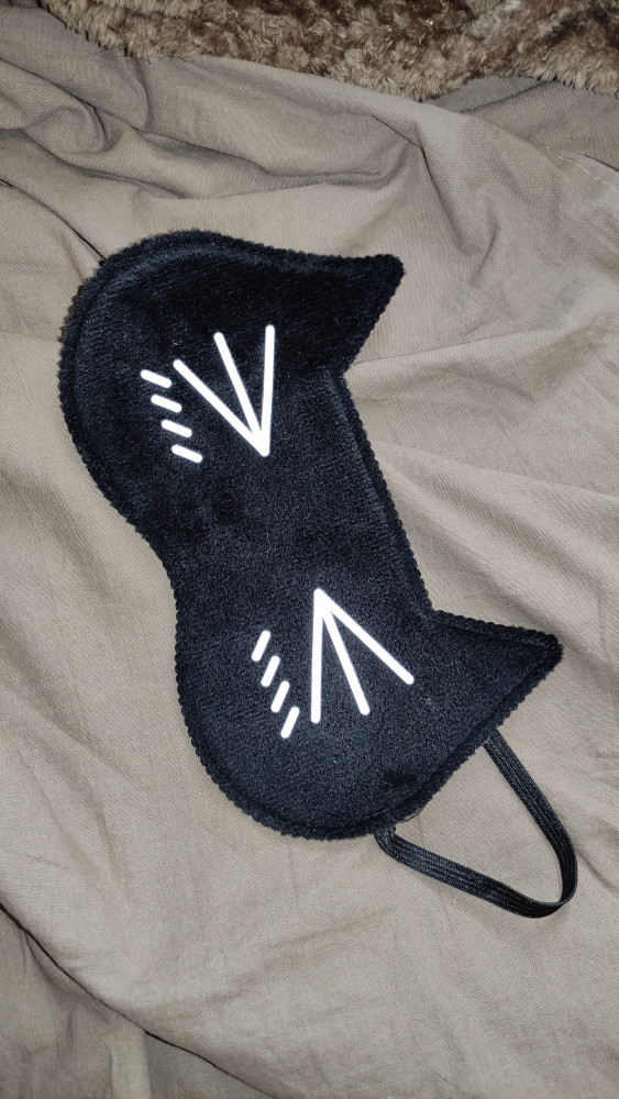 Хорошая маска, не маленькая, резинка впору, не давит и не сваливается. Взяла, чтобы поспать в самолёте, надеюсь, поможет. Приятная на ощупь, смешной котячий принт))