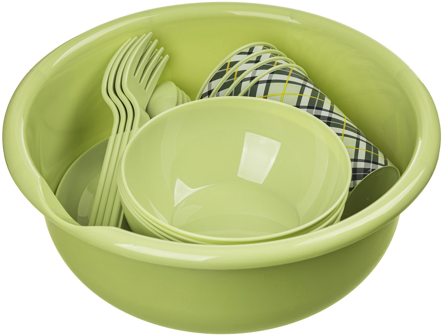 Homver Набор для пикникаВ данный момент этот товар отсутствует в продаже. Возможно, у нас найдется аналогичный или похожий товар здесь. Универсальный набор посуды для пикника на четыре персоны изготовлен из полипропилена, который не содержит бисфенола А и на 100% перерабатывается. Набор упакован в миску с прозрачной крышкой, которая снабжена скрытым носиком для слива и позволит сервировать овощи, мясо и другое. IML-декор наносится на посуду на стадии литья и будет долго радовать глаз. Посуда подходит для использования в микроволновой печи и посудомоечной машине (без декора). |