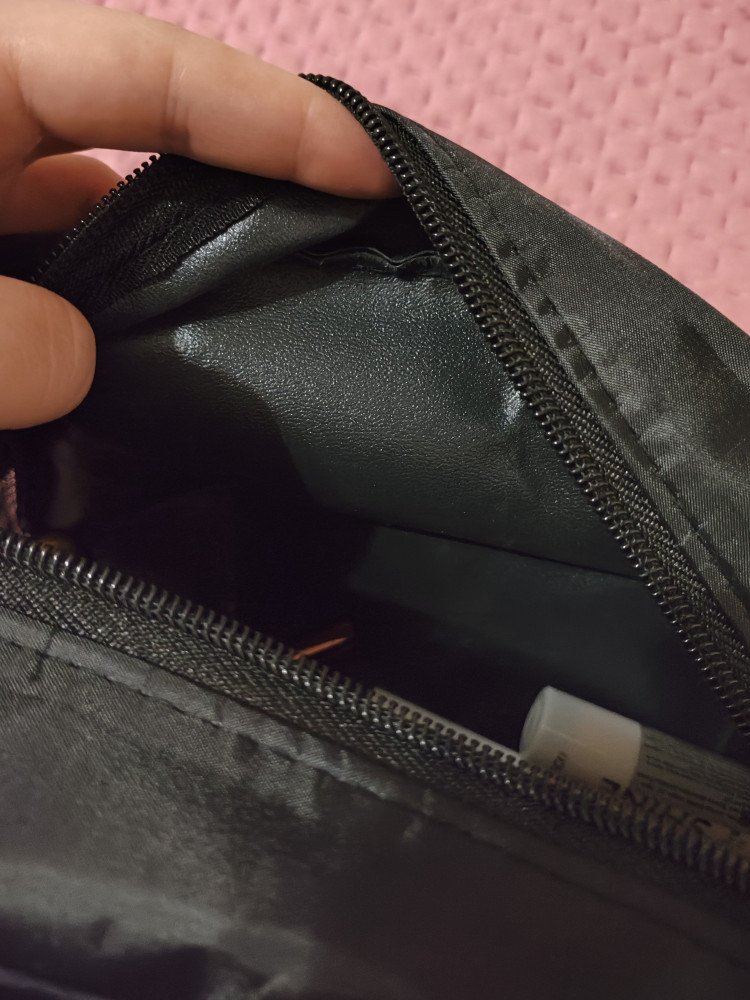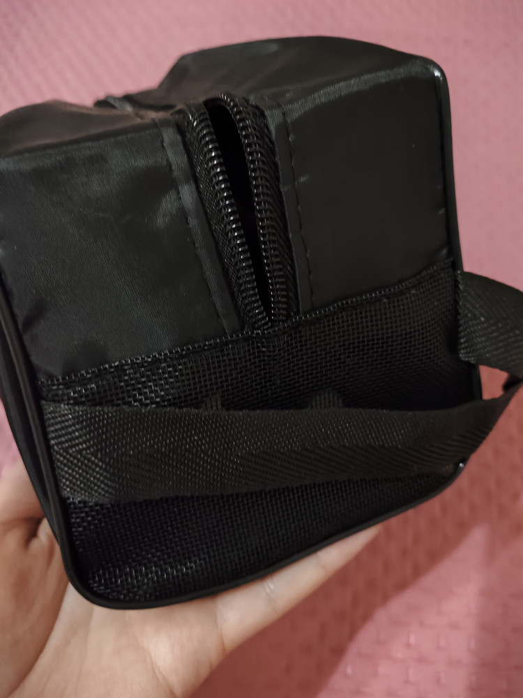 Объем косметички впечатлил, ее можно и в дальнюю дорогу брать. Запах присутствует, но не сказать, что прям сильный, потихоньку выветривается. Внутри поверхность, которую можно протирать. По бокам просвечивающие сеточки. Дизайн скромный, но недорогая и вместительная зато.