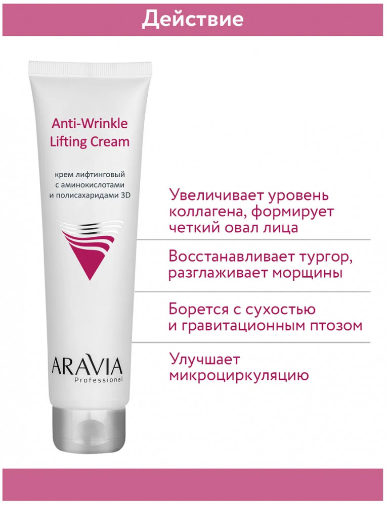 Aravia Крем лифтинговый с аминокислотами и полисахаридами «Anti-Wrinkle Lifting Cream»+199 хорошее увлажнение быстро впитывается некомедогенный не раздражает