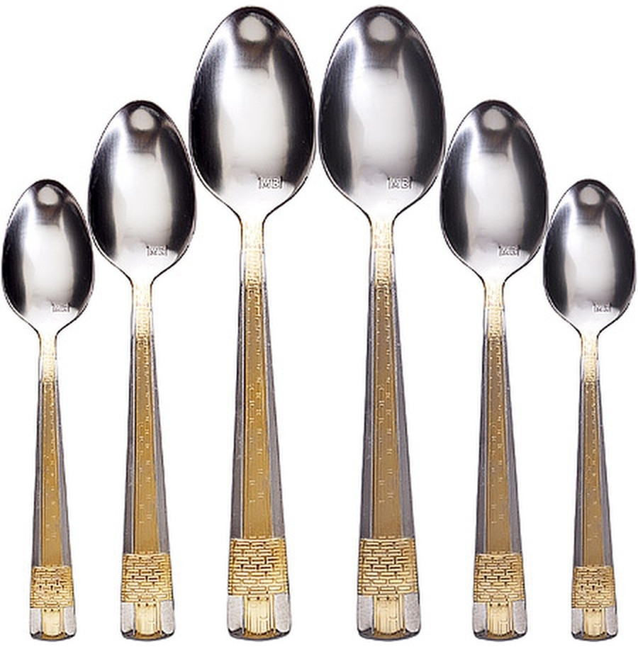 Набор из 6-ти чайных ложек выполнен из высококачественной нержавеющей стали, которая проходит тщательный технический контроль. Качественная полировка обеспечивает высокую степень гигиеничности приборов. Приборы из нержавеющей стали отличаются высокими антикоррозионными свойствами и значительной устойчивостью к воздействию кислот и щелочей. Такая сталь не изменяет вкус и цвет пищи, не выделяет вредных веществ. Ручки ложек украшены элегантным золотым узором, выполненным по технологии плазменного напыления и обеспечивающим высокую износостойкость покрытия. Красивый и элегантный набор чайных ложек «Mayer&Boch» станет настоящим украшением любого праздничного или обеденного стола. |