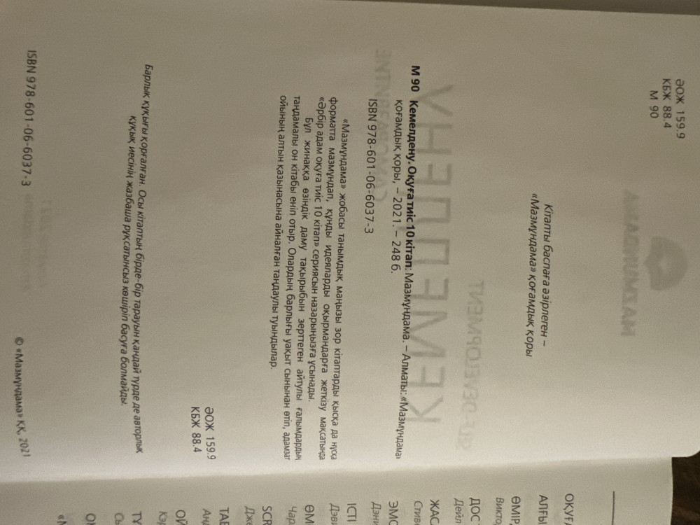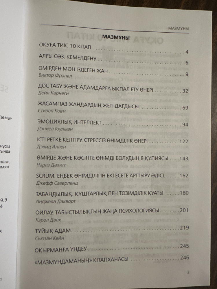 Серия: Оқуға тиіс 10 кітап «Мазмұндама» жобасы танымдық маңызы зор кітаптарды қысқа да нұсқа форматта мазмұндап, құнды идеяларды оқырмандарға жеткізу мақсатында «Оқуға тиіс 10 кітап» сериясын назарыңызға ұсынды. Бұл жинаққа өзіндік даму тақырыбын зерттеген айтулы ғалымдардың таңдамалы он кітабы еніп отыр. Олардың барлығы уақыт сынынан өтіп, адамзат ойының алтын қазынасына айналған таңдаулы туындылар |