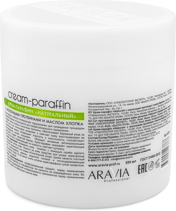 Aravia Крем-парафин для рук с молочными протеинами и маслом хлопка «Натуральный»
