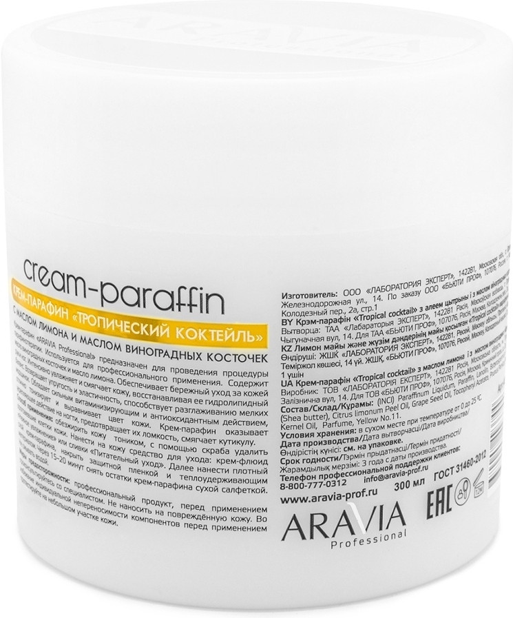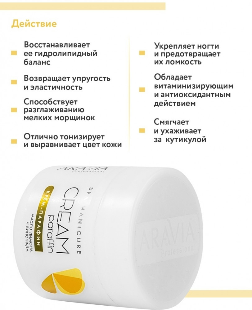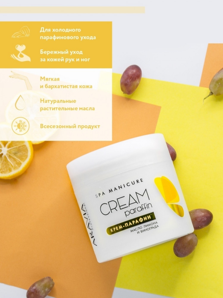 Aravia Крем-парафин для рук с маслом лимона и маслом виноградных косточек «Тропический коктейль»