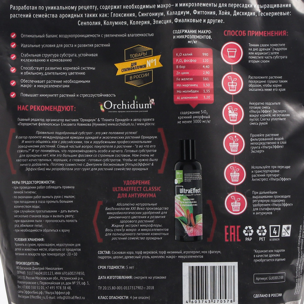 | Компания УльтраЭффект - это производитель №1 в России продукции для выращивания орхидей. Это универсальные и специальные грунты, субстраты, грануляты и дренаж для орхидных и других горшечных растений. Стимуляторы и регуляторы роста, подкормки и удобрения, укоренители и фитогармоны . Сопутствующие товары для цветоводства – горшки, кашпо и многое другое. |
