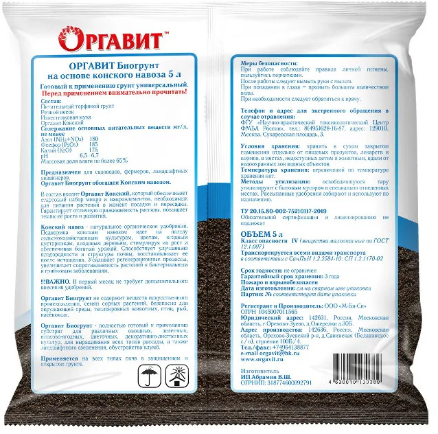 Оргавит Грунт на основе конского навоза «Универсальный»В данный момент этот товар отсутствует в продаже. Возможно, у нас найдется аналогичный или похожий товар здесь. Биогрунт, обогащённый органическим удобрением, биогумусом, который обеспечивает стартовый набор микро и макроэлементов, необходимых для питания растений в момент посадки и пересадки. Гарантирует отличную приживаемость рассады, повышает темпы её роста и развития. В первый месяц не требует дополнительного внесения удобрений. Не содержит веществ искусственного происхождения, семян сорных растений, безопасно для окружающей среды, теплокровных животных, птиц, рыб, насекомых. Полностью готовый к применению субстрат для различных овощных, зеленных, плодово-ягодных, цветочных, декоративно-лиственных культур, для выращивания всех типов рассады, а также ландшафтного озеленения, обустройства клумб. Применяется на всех типах почв в защищенном и открытом грунте. |