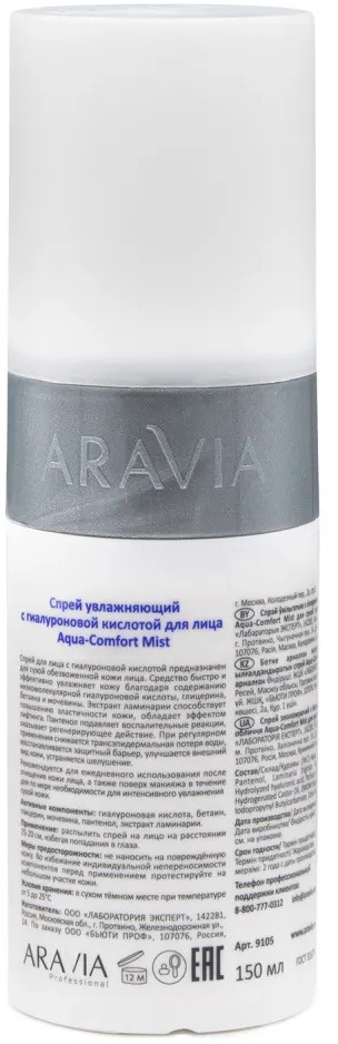 Aravia Спрей увлажняющий для лица с гиалуроновой кислотой «Aqua Comfort Mist»-25% +104