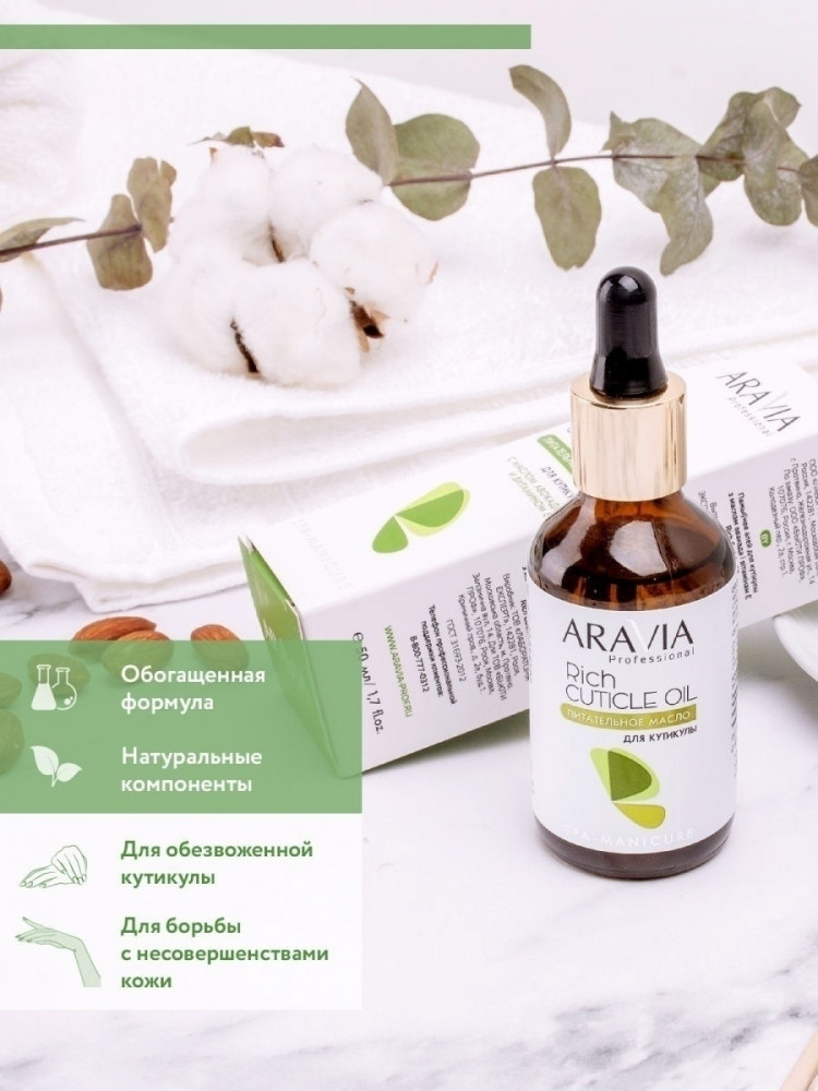 Aravia Масло питательное для кутикулы с маслом авокадо и витамином E «Rich Cuticle Oil»В данный момент этот товар отсутствует в продаже. Возможно, у нас найдется аналогичный или похожий товар здесь. Питательное масло для кутикулы разработано для борьбы с растрескиваниями кожи вокруг ногтевой пластины и для восстановления сухой обезвоженной кутикулы. Масло повышает уровень естественной увлажненности кожи, быстро впитывается в кутикулу, эффективно помогает в борьбе с сухой растрескавшейся кожей вокруг ногтей и другими несовершенствами. |