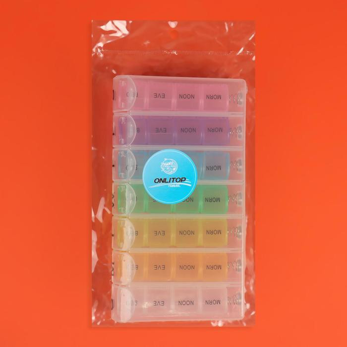 ONLITOP Таблетница-органайзер «Неделька»В данный момент этот товар отсутствует в продаже. Возможно, у нас найдется аналогичный или похожий товар здесь. Безопасность в путешествии превыше всего. Таблетница сохранит необходимые лекарства, чтобы в важный момент вам не пришлось лихорадочно искать пилюлю в сумке или чемодане. Рассортируйте содержимое аптечки по отсекам и отправляйтесь в путь: всё самое нужное постоянно будет под рукой. Контейнер подходит для хранения различных мелочей не только в путешествии, но и дома. |