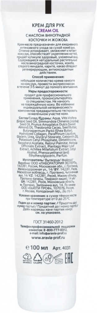 Отзывы «Крем для рук с маслом виноградной косточки и жожоба «Cream Oil»»