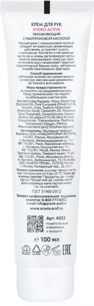 Aravia Крем для рук увлажняющий с гиалуроновой кислотой «Hydro Active»