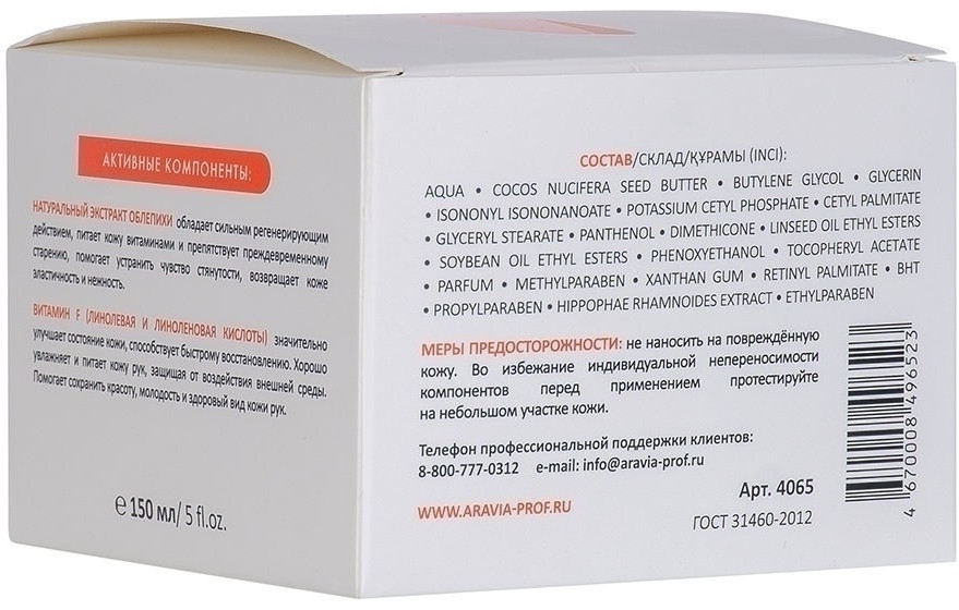 Aravia Крем восстанавливающий для очень сухой кожи рук с экстрактом облепихи и витамином F «Repair Cream»-25% +114