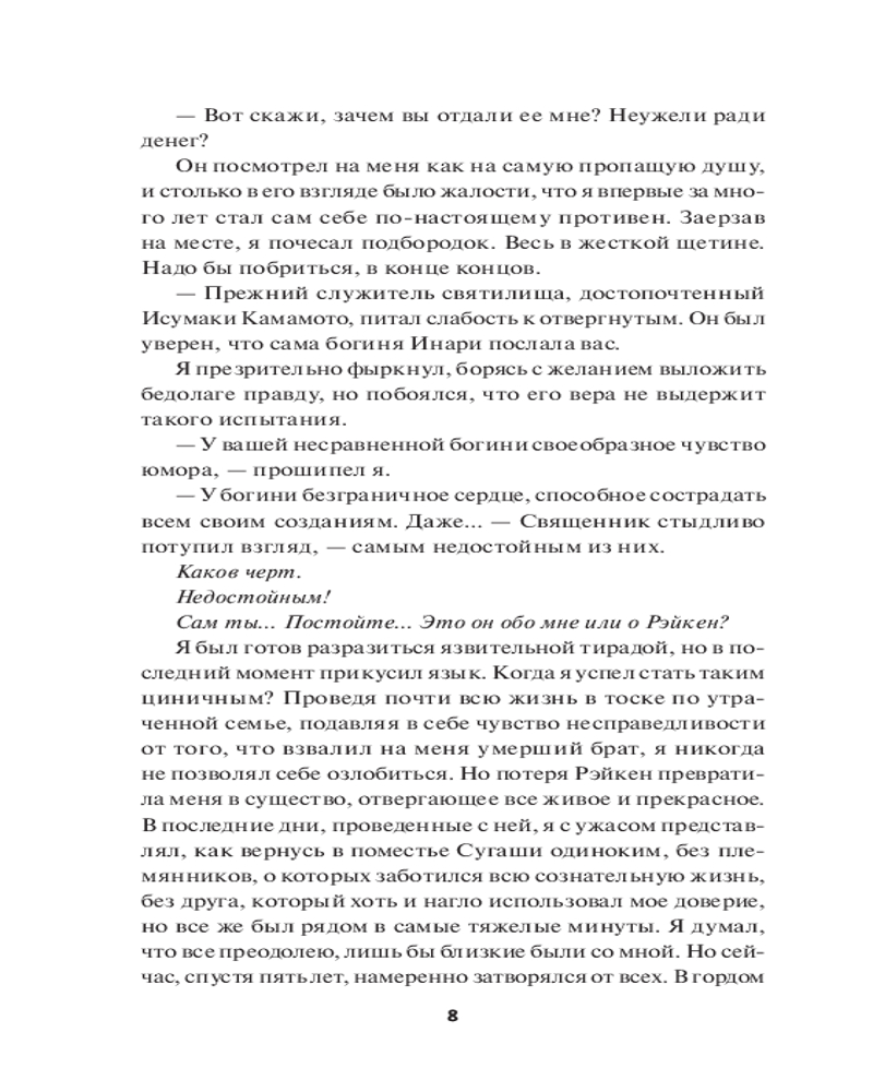 «— Там действительно живут люди, которые умеют летать. Птичьи духи , или дети неба, не знаю уж, как правильно. Потомки Сусаноо, бога ветра. Мы пойдем куда угодно, в любую сторону. Рано или поздно крепость явится нам. Так уж она устроена. Просто доверься чутью».