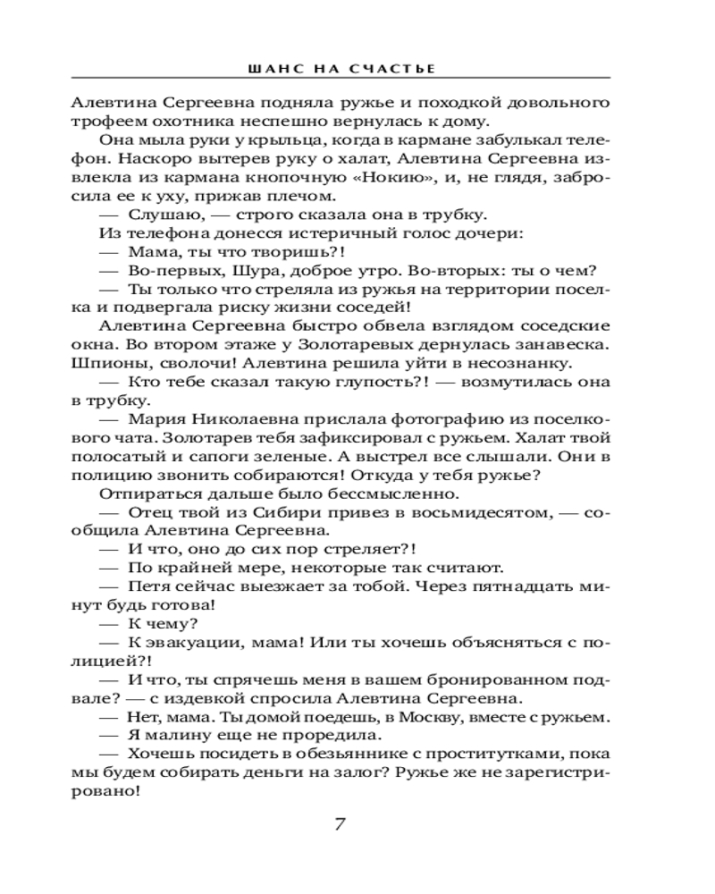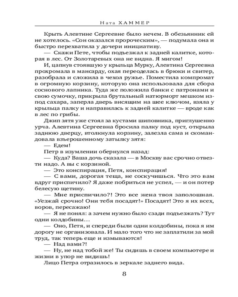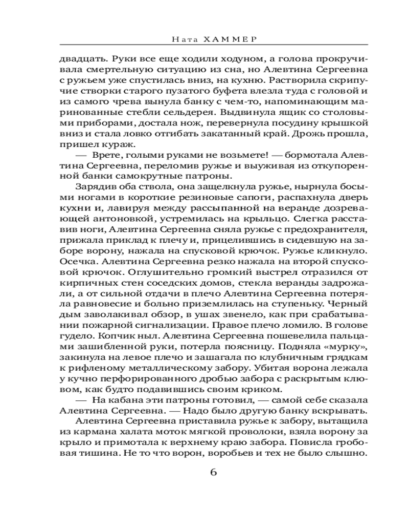 Серия: Радость жизни. Романы Наты Хаммер Непоседливая егоза семидесяти двух лет Алевтина Сергеевна ведет наступательный бой всю жизнь. Она наступает на членов семьи и дачных соседей, несговорчивых охранников и коррумпированных чиновников. Она готова взяться и за охотничье ружье бывшего мужа, но вдруг выясняет, что главным средством борьбы в изменившемся мире стал плоский пластиковый ящик компьютера. Для освоения нового вида оружия приходится пойти на серьезные жертвы, однако ради победы над врагом-соседом Алевтина Сергеевна готова на всё... Она и не догадывается, во что ввязывается, как не догадывалась Алиса Льюиса Кэрролла, открывшая маленькую дверь в Страну Чудес... |