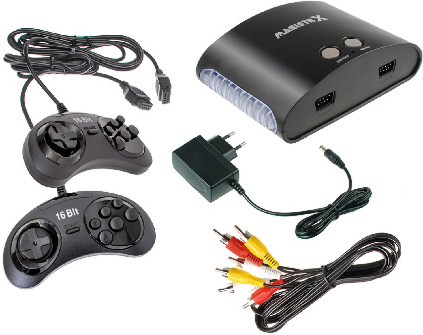 New Game Игровая приставка SEGA Magistr ХВ данный момент этот товар отсутствует в продаже. Возможно, у нас найдется аналогичный или похожий товар здесь. Обновление модельного ряда игровых приставок 16-бит. Magistr Х — компактная игровая приставка с увеличенной памятью и новым сборником 220 встроенных игр. В сборник включены полные версии самых популярных игр стандарта 16-бит Sega. Также предусмотрена возможность загружать игры со внешнего носителя информации — карты памяти формата microSD и microSDHC. Для Magistr Х 220 разработана новая компактная цветная упаковка с матовой поверхностью, лакированными элементами и тиснением серебряной фольгой. Внешний вид игровой консоли и джойстиков может отличаться от приведённого на упаковке. |