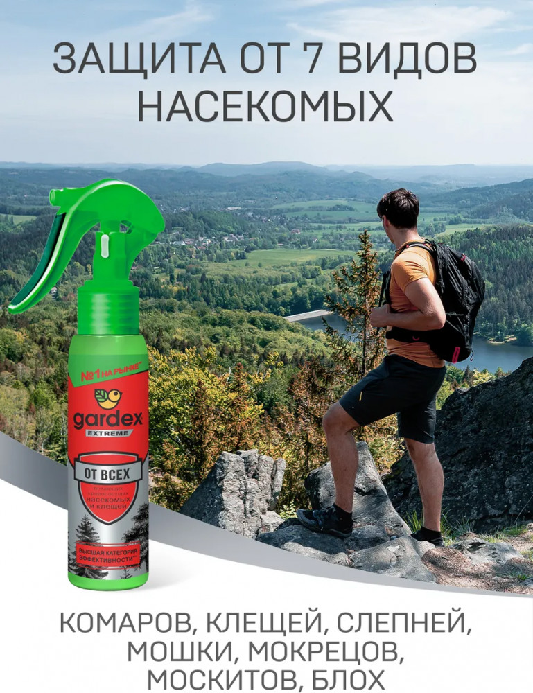 💳 Оплатить за товар можно при получении 🇰🇿 Есть бесплатная доставка по Казахстану от 1 дня 🎁 Копите бонусы с каждой покупки Серия: Extreme Если в теплый день Вы собираетесь на рыбалку, пикник, прогулку по лесу или возле водоема, то будьте готовы к рою насекомых вокруг Вас. Хорошо, что есть Усиленный спрей «Gardex Extreme». Благодаря инновационной формуле, средство гарантирует сверхсильную защиту в течение 4 часов от комаров, москитов, слепней, мокрецов, мошек, блох, а также таежных и лесных клещей даже в местах повышенного скопления насекомых. |