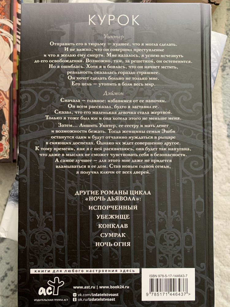 Курокинтересный сюжет раскрытие персонажей динамичность эмоциональность В данный момент этот товар отсутствует в продаже. Возможно, у нас найдется аналогичный или похожий товар здесь. Серия: Ночь дьявола Пенелопы Дуглас Уинтер отправила Деймона его в тюрьму. И это худшее, что она могла сделать. Да, он совершил преступление и несет справедливое наказание. Но Уинтер нужно было исчезнуть до его освобождения, ведь теперь цель его жизни — утопить в боли и ее и весь мир. |