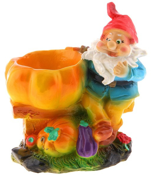Хорошие сувениры Кашпо фигурное «Гном с тыквой»-25% +202 ювелирная работа красивый дизайн повреждения